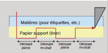 La découpe en pointillés et effectués en contrôlant la force de pendant les mouvements de montée et descente de lame. C'est parfait pour découper les lignes de séparation pour détacher les étiquettes, des lignes de pliages pour les enseignes PLV et autres.