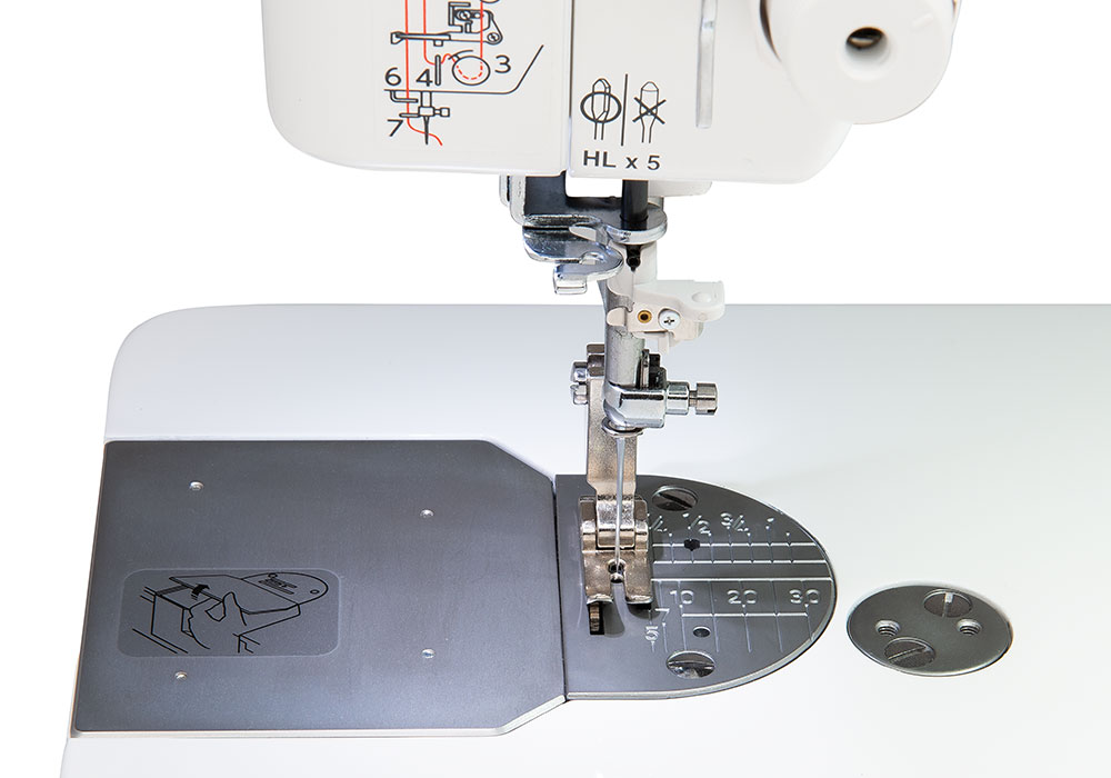 La canette XL à chargement latéral contient 40% de fil en plus que les canettes industrielles normales. Issue de la technologie de l'industrie textile, Le boîtier à canette et le crochet tout en acier tournent sur 360°, ce qui permet d'obtenir des coutures précises et fiables même à vitesse élevée.