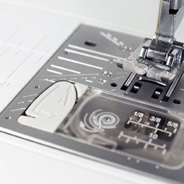 Utilisez les bons outils au bon moment est important en couture. Lorsque vous utilisez des tissus légers, ou réalisez un des quilts, une plaque à aiguille point droit fait toute la différence. Notre système de plaque à aiguille One Step ™ vous permet de changer facilement et d'utiliser la plaque à aiguille adéquate selon votre projet. Il suffit simplement d'appuyer sur un bouton pour libérer la plaque à aiguille et de la remplacer par une autre. Cela ne prend que quelques secondes et ne nécessite aucun outil.