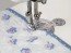 Employez ce pied pour poser un biais sur des bords inachevés. Alignez la position de l ‘aiguille avec la vis de réglage. Guidez le tissu avec la main gauche et le biais avec la main droite.