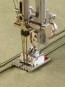 Le pied nervures s’emploi avec une aiguille double de 2 mm pour réaliser des nervures ou des petits plis. Les rainures à l’envers du pied de biche facilitent la couture de plusieurs rangées de nervures ou des petits plis à des distances identiques.